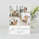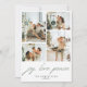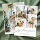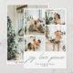 Modern minimalist julkort med ”glädje. kärlek. fred.” i grön handskriven stil med fyra av dina favorit familjefoton på framsidan och en på baksidan. Lägg till ett personligt meddelande, familjeuppdateringar eller nyårshälsningar på baksidan.