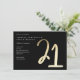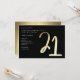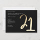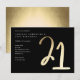 Modern minimalistisk 21-års födelsedagsfest inbjudan har stilren falsk guld folie nummer handskriven skript 21 och din fest detaljer i klassisk serif teckensnitt på svart bakgrundsfärg, enkel och elegant, bra överraskning vuxen milstolpe födelsedags inbjudan för män och kvinnor. Den svarta bakgrundsfärgen kan ändras till valfri färg.