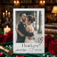 Uttryck din hjärtliga tacksamhet med den eleganta enkelheten hos detta moderna minimalistiska kalligrafiska manus-foto tackkort för bröllop. Perfekt balans mellan samtida trender och tidlös känsla, detta design fungerar som den ultimata finalen på din firande, och säkerställer att dina vänner och familj känner sig verkligen uppskattade.