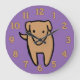 Fängslande minimalistisk konst väggklocka. Stor väggaccent för ett hundälskande familjhem eller för en veterinärklinik, hundräddning, husdjursfrisör eller annat husdjursrelaterat företag. Designen är gjord av en minimalistisk tecknad konst av en hund, den har en lavendelbas och feta 12 timmars siffror.