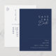 Modern minimalist marinblå | Silver Save The Date Inbjudan Vykort