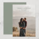 Meddela din speciella dag med elegans och enkelhet med detta minimalistiska Save The Date-kort med en full bleed-fotografi från förlovningen. Lägg till en av dina favoritbilder för att skapa ett unikt minne. Mix och matcha med kompletterande delar för en sammanhängande inbjudan. Skapa tidlösa minnen med denna mångsidiga design. Beställ nu för en sofistikerad touch till din bröllopsförberedelse!