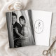 Set your date with a clean, modern photo card. Black and white layout, simple script, and your initials in a fresh floral monogram on the back. For couples who want a look that's real, simple, and always in style.