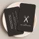 Modern elegant visitkortsmall med falskt silver saxmönster. Perfekt för frisörer, salonger. Minimalistisk design.