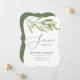 En djärv olivkvist åtföljer dina personliga bröllopsdetaljer på denna tidlösa bröllopskortdesign. De akvarellfärgade bladen i dämpade gröna nyanser är perfekt balanserade mot den vita bakgrunden, vilket ger en sofistikerad look. Tillsatsen av en djärv färg på baksidan bidrar till känslan av elegans och kvalitet. Del av en trendig brölloppskollektion.