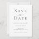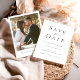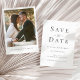 Meddela din stora dag med stil med denna moderna minimalistiska parets fotobesparing av datum för bröllopet. Denna snygga och samtida design har en djärv svart-vit typografi, med "Spara datum" som fokuspunkt i en elegant serif-teckensnitt, kompletterad med en delikat skriptdetalj. På baksidan läggs en personlig touch till med ett anpassningsbart foto av paret, tillsammans med deras namn i samma moderna layout. Perfekt för par som älskar ren estetik med en personlig känsla, sätter detta kort tonen för en chic och oförglömlig firande.