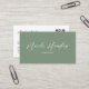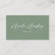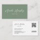 A modern, minimalist business card template featuring a sage green background for a warm, organic touch. The front highlights your name in elegant script, creating a sophisticated yet approachable impression—perfect for a consultant or event planner. The backside includes a clean layout with a QR code for instant access to your portfolio or website, alongside neatly arranged social media icons for seamless connectivity. This design blends timeless rustic charm with contemporary professionalism, making it ideal for creative professionals who value both style and clarity.