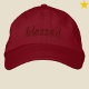 A subtle and minimalist Christian embroidered hat. Red embroidery on a red hat is a really trendy effect, and you can change the word to something else you like. The word cannot be too long, or it won't fit! 'blessed.'
