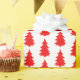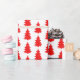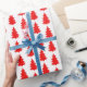 Enkelt, modernt Skandinaviskt stil-rött och vitt julklapp, med rött gräs träd på rent vit bakgrund.