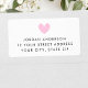 Modern minimalist returadress med rosa hjärta adressetikett