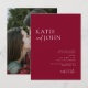 Modern minimalist röd bröllopsfoto meddelande vykort