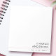 Modernt anteckningsblock med ditt namn och titel i det nedre högra hörnet åtskilda av en ljus rosa linje. Du kan ändra typsnitt och färger, flytta och ändra storlek på element med hjälp av designverktyget.
