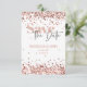 Dela din bröllopsdatum med din familj och vänner med detta vackra och enkla Save The Date-kort. Modern, minimalistisk design med en touch av gnistrande roséguldsequins och skriftsnitt kommer att tillföra en stilren känsla till din speciella dag