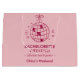 Denna presentpåse har texten “Sängvätstweekend • 22–24 augusti 2025” i en ren rosa monokrom layout. Modern, feminin och perfekt koordinerad är den idealisk för välkomstpresenter, hotellrumsnedsläpp och festfavoriter. Ett enkelt och stilfullt sätt att knyta hela sängvätstsviten samman med en polerad look.