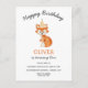 En söt och fantasifull skogsräv Neutral kön första födelsedagsinbjudan med ditt barns namn och ålder.