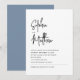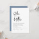 Dessa eleganta, minimalistiska vita bröllopsinbjudningar har svart tryck modern skrifttypografi och ren, sans serif-typografi för en enkel och stilren med dammig blå på baksidan av inbjudan som du och dina gäster kommer att älska.