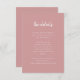Dessa eleganta, minimalistiska bröllopsgästinformationskort har en modern vit skripttypografi och ren, sans serif-text på en dammig rosabakgrund för en enkel och stilren design som du kommer att älska. Du kan använda dessa kort för köranvisningar, mottagnings- eller transportinformation, hotell- eller boendeinformation och alla andra bröllopsdetaljer som du vill att dina gäster ska veta.