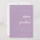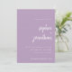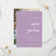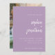 Dessa eleganta, minimalistiska lavendel ljuslila bröllops kortsvar med modern skript typografi och ren, sans serif text, med ditt favorit personliga foto på baksidan.