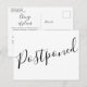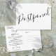 Detta moderna minimalistiska svarta och vita skript för försenat datumkort kan anpassas med din information om förseningen. Baksidan har ytterligare detaljer, inklusive din returadress, bröllopswebbplats och utrymme för din mottagares adress. Perfekt för bröllop, bröllopsdusch, förlovningsfester, årsdagsfiranden, examina, födelsedagsfiranden, baby shower, dop och andra speciella evenemang under hela året! Designad av Thisisnotme