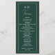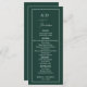 Modern minimalist smaragdgrön monogram bröllop meny