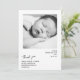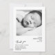 A modern newborn thank-you design with a clean black and white photo layout and simple, minimalist typography. Perfect for sharing baby details while thanking friends and family for their gifts and support. Personalize the photo, birth information, and message to create a warm, contemporary announcement for your new arrival. Made for families who love a crisp, understated look.