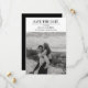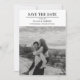Ett enkelt, klassiskt, minimalt fotokort för att spara datumet är det perfekta sättet att dela dina glada nyheter med vänner och familj. Visas i svart och vitt, men du kan enkelt ändra bakgrundsfärgen i designverktyget för att samordna med din bröllomspalett om du önskar. Observera att vårt foto är svart och vitt.