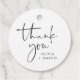 Moderna minimalistiska tackkort för ditt bröllop, förlovning, brudvisning eller baby shower med 'tack' i mjuk svart modern handskriven script, med en rad anpassad text under. Denna enkla minimalistiska design i klassisk svart och vit är perfekt för alla tillfällen.