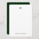 Denna eleganta design presenterar en förfinad och personlig brevpappersupplevelse som är perfekt för dem som uppskattar understatement och en touch av naturinspirerad charm. Den kräsna, rena vita framsidan pryds av din valda initial i en sofistikerad skogsgrön nyans som utstrålar lugn och klassisk professionalism. Denna framträdande initial, i kombination med ditt fullständiga namn som diskret placeras längst ned, skapar ett verkligt skräddarsytt statement som är både personligt och tidlöst. Designen förenar modern minimalism med en genomtänkt nick till naturen, vilket gör varje anteckning du skriver kännbar och unik. Vänd på kortet för att upptäcka en förtjusande överraskning: ett delikat och invecklat mönster av små vita tallar mot samma rika skogsgröna bakgrund. Denna charmerande detalj tillför ett lager av visuell intresse och en subtil festlig eller naturlig touch, perfekt för årets alla korrespondens eller julhälsningar. Detta brevpapper höjer verkligen ditt personliga varumärke och erbjuder ett minnesvärt och framstående sätt att knyta