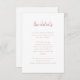 Dessa eleganta, minimalistiska bröllopsgästinformationskort har en dammig rosa modern skriptypografi och ren, sans serif-text mot en enkel vit bakgrund för en enkel och stilren design som du kommer att älska. Du kan använda dessa kort för köranvisningar, mottagnings- eller transportinformation, hotell- eller boendeinformation och alla andra bröllopsdetaljer som du vill att dina gäster ska veta.
