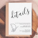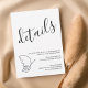 Complete your wedding suite with this modern minimalist details card featuring a graceful script “details” header and a clean, understated layout. The flowing calligraphy paired with simple typography creates a refined balance of romance and sophistication, perfect for contemporary celebrations.
