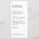 This modern wedding menu card features a clean minimalist layout with elegant typography, perfect for displaying your reception menu in a refined and timeless way. Designed to complement contemporary and classic weddings, it adds a polished finishing touch to your table settings. Customize the menu text with your own courses, dishes, names, and wedding date. Ideal for formal dinners, plated receptions, and modern wedding celebrations. This menu card pairs beautifully with neutral, white, and understated wedding decor.