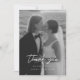 Modern Minimalistic 2-Photo Script Wedding Thank You Card. Personalize with two of your favorite wedding photos, wedding location, wedding date, and custom thank you message on the back.