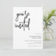 Modern minimalistisk inbjudan till affärshändelser med minimal skripttypografi och enkel grafisk design.