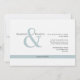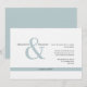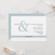 Modern minimalistisk bröllopsinbjudan. Klassiskt block, oformaterad text och skripttext med stort upphöjd och rand. Vågräts layout. Bakåt och bakifrån.. ljusblå.