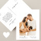 Modern babyduschar ett fototack som du vykort i en enkel design med ett favoritfoto av baby/familjen. Ladda upp fotot och anpassa baksidan av kortet med ditt tackmeddelande. Skicka ett tack till gästerna för att de är närvarande och deltar i din speciella dag med det här fototackkortet. Den har svart minimalistisk typografi med hjärtaccent. Anpassa genom att lägga till namn, datum, adress, meddelande och andra detaljer. Detta moderna minimalistiska vykort är perfekt för babyduschar, nyfödd bebis-meddelanden och så mycket mer!