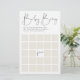 Bryt isen med det klassiska babyduschbingospelet med mjukt svart handskript och modern serif-skrift med neutralt beige accents.