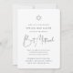 Inbjudan gäster för att fira din dotters bat mitzvah med dessa moderna och minimala inbjudningar i klassisk svartvitt. Den enkla designfunktionen är "Bat mitzvah" i handskrivet skript för avslappnad, med din ceremoni och firande-detaljer under med modern svart text för mjuk aska. En liten, modern David-stjärna kompletterar designen.