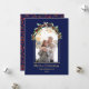 Detta är ett modernt minimalistiskt blomsterbåge-kort med ett foto som kan anpassas till en högtidskort i kunglig blå färg.