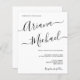 Denna moderna minimalistiska bröllopsinbjudan användor en elegant och enkel svart manustypografi. Anpassa den här inbjudningsmallen med namnen för bruden och trippen. Chic och snyggt, med betoning på parets namn. Tips! Om du vill behålla de långa svan-tecknen på namn, behållor du de små fyrkanterna på varje ände av namn. *Observera också att storleka för dessa inbjudningar inte är den storleka standardposten. Vissa land har höjningar utan standardstorlekar.