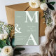 Modern minimalistisk bröllopsinbjudan i salviagrönt. Utmärks av fet monogramtypografi och minimalistisk grafisk design. Anpassa texten med alla detaljer från er speciella dag.