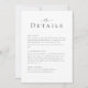 Fyll i ditt bröllop-kontorsprogram med det här moderna minimalistiska Bröllop-informationskortet. Designat för par som kärlek har en söt, contemporary estetik, har det här kortet ett svartvitt färg-schema med ett förfinat serif-teckensnitt och en delikat skriptaccent. Perfekt för att dela viktig bröllop-information, t.ex. platsuppgifter, logi, klädkod eller en bröllop-webbplats, garanterar denna minimalistiska utformning tydlighet och elegans. Med det här detaljkortet får du en sofistikerad beröringskopia om du vill ha ett helt anpassade för att matcha ditt bröllop-tema.