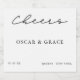 "Modern Minimalist Bröllop Script Cheers Sparkling Vin-etiketten" är en sofistikerad fingervisning för din speciella dag. Den här vin-etiketten är utformad med minimalistisk elegans och tillför firande en snyggt. Chicens manus "cheers" står emot den eleganta designen och skapar en minnesvärd detalj för ert mousserande vin flaskor. Anpassa den med ditt bröllop-datum, namnen på bruden och brudgummen och platsen adress för en personlig beröring. Öka din bröllop-dekoration med den moderna och elegant vin-etikettdesignen, perfekt för vilken contemporary som helst firande. Skål för kärlek och lycka!
