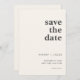 Modern bröllop spara datum med minimalistisk typografi.