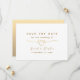 Spara datumet för en modern, klassens och elegantens affär med minimalistisk charm. Vår inbjudan har ett känsligt skript och ett romerskt guld-rep-hjärta med skakande chic och lovar firande lika tidlös som kärlek. Markera dina kalendrar för en oförglömlig dag av glädje och sofistikering.