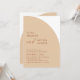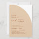 En modern bröllopsinbjudan designad med en enkel layout och en mjuk, balanserad look. Designen fokuserar på tydlig textplacering, vilket gör alla viktiga detaljer lätta att läsa samtidigt som den fortfarande känns elegant och genomtänkt. Den böjda formen tillför ett subtilt visuellt intresse utan att inbjudan känns rörig. Persikansandtonen ger en varm, naturlig känsla som fungerar bra med neutrala paletter och återhållsam bröllopsdekor. Ett bra val för par som föredrar en ren och modern stil framför alltför dekorativa designs. Denna inbjudan passar vackert med minimalistiska, samtida och avspända bröllopsteman. Fungerar särskilt bra för inomhuslokaler, utomhusceremonier och trädgårdsbröllop. Perfekt för vår-, sommar- och tid