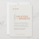 Fira din stora dag med underskattad elegans med den här moderna minimalistiska bröllopsinbjudan. Med en förfinad terracotta- och krämpalett i färg, strukturerad utformning av lodrät och sofistikerad serif typsnitt blandar den här designen perfekt tidslassig formalitet med enkel contemporary. ✨ Högdagrar: Ren och minimalistisk lodrät Modern serif-typografi i varm terracotta-Perfekt för chic, intim eller modernt formellt bröllop Fully genom Zazzles redaktörs Underbar för: City bröllop, konstnärliga platser, modernt par som vill ha ett rent och djärvt estetiskt.