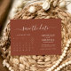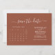 Den moderna minimalistiska kalenderbudgeten Terracotta Bröllop spara datum. Anpassa enkelt genom att ersätta varje info. Flytta cirkeln genom att klicka på länken Anpassa ytterligare. Kontrollera förhandsgranskningen innan du lägger till i kundvagn.