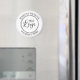 Skapa din egen personlig i kampanjsyfte runt köksmagnet med din cirkelformade bild av logotypen. Anpassa den heltäckande vita bakgrunden färg eller den svarta texten färg för att matcha bilden. Om du ändrar teckensnittstypen eller storleka kan du justera textens böjning i små steg genom bran. Ha roligt att skapa din egen anpassad design.