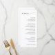 Modern bröllopsmeny med en enkel och minimalistisk svart-vit design med elegant typografi tillsammans med ett klassiskt traditionellt serif-teckensnitt. Den minimalistiska layouten gör denna meny bra för ett formellt bröllop.