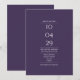 Modern minimalistisk elegant lila bröllopsdatum inbjudningar